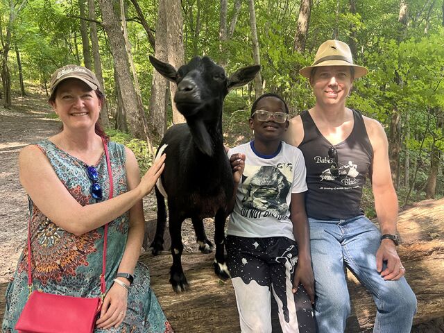 Hoof It Goat Treks strives to be a place where everyone can enjoy nature and experience a sense of calm and belonging while wandering through the forest with goats. We are inclusive of all guests, offering opportunities for those with accessibility limitations to enjoy the joy of nature and goats. We also aim to educate guests on the importance of open spaces and land management. The goats play a vital role in maintaining our property by helping control the spread of invasive plant species. Their eating habits allow us to naturally manage our land without the need for chemicals or machinery. Our property is managed organically and sustainably.