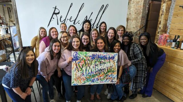Rebel Nell offers several experiences that can be delivered to you or you can do it at our studio! Perfect for a corporate offsite or annual meeting. Each attendee is encouraged to make a contribution to the mural based on a series of questions and prompts, with a hidden message revealed at the end! Always a crowd-pleaser, the mural making is a classic way to spark conversation, create powerful connections and have a great time.