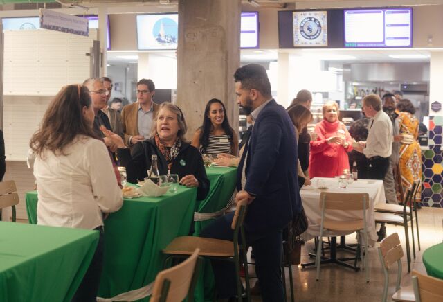 On the first floor we have 8 restaurants serving cuisines from all over the world, a bubble tea stall, one grocer, and a driving school. Upstairs, our office spaces are currently leased by two mental health counselors and a book shop which features cookbooks, food themed books, and artisan food items. Our commissary kitchen and two conference rooms are rentable event space.